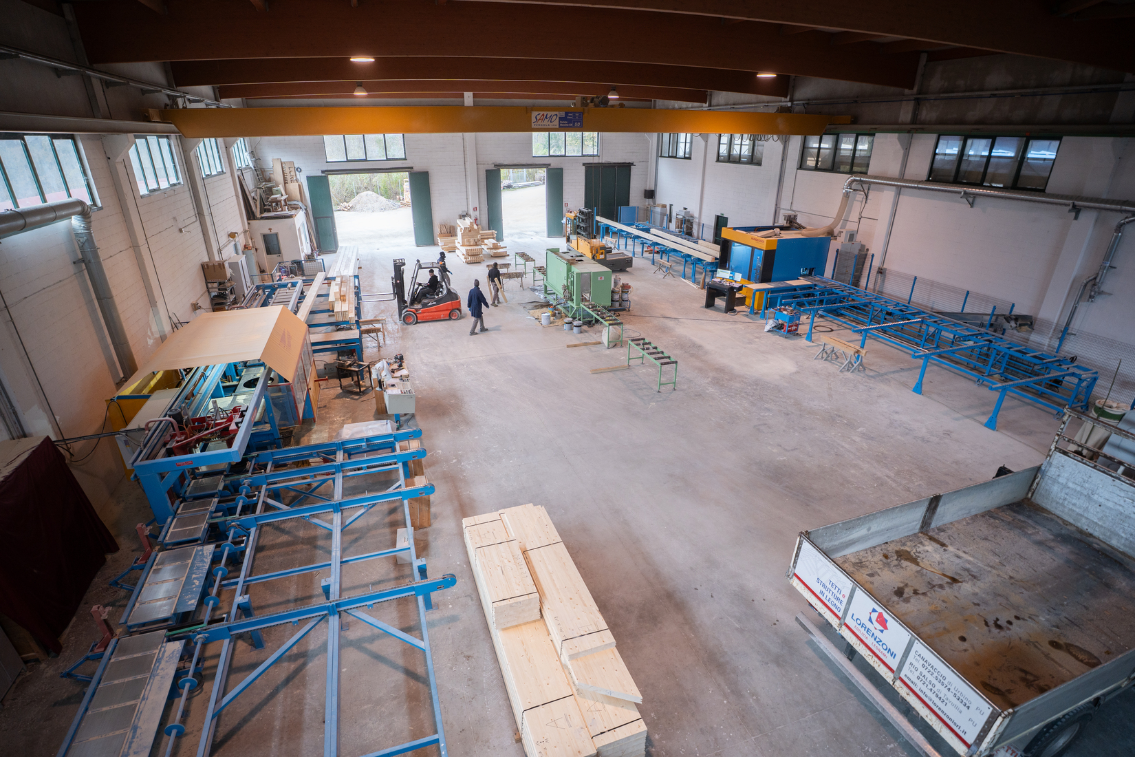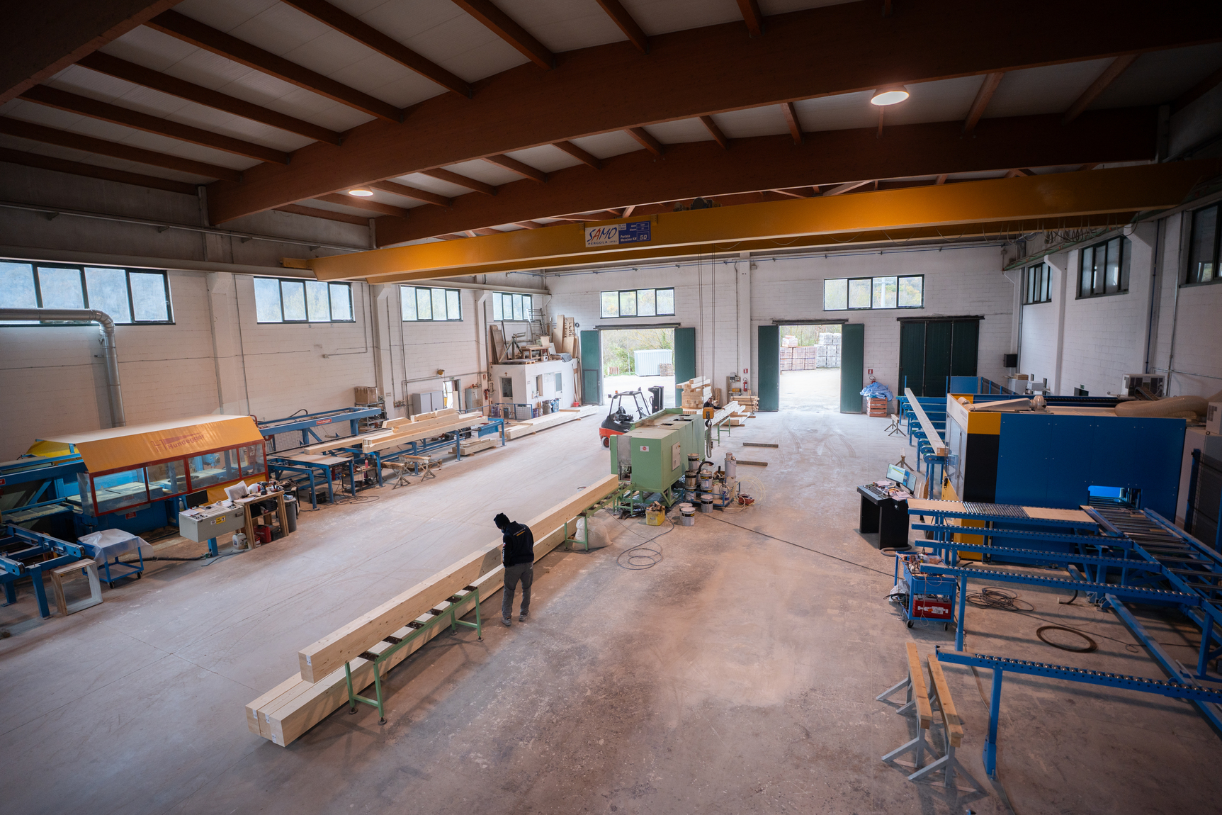 Il legno viene lavorato attraverso i Centri Taglio Hundegger: K2 e Robot Compact a controllo numerico installati in azienda.